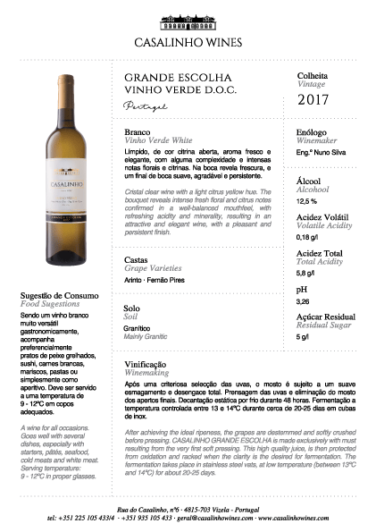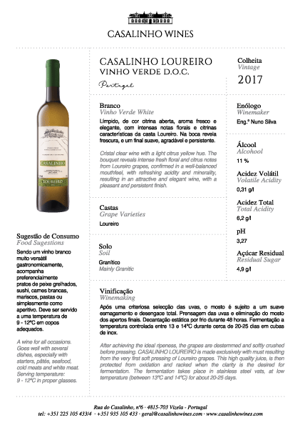 Les vins Casalinho portent le nom de nos caves. Nous nous engageons à ce que tous les repas soient de très bonne qualité, y compris les produits mono-variétaux comme Loureiro et Arinto, véritables explosions de saveur.