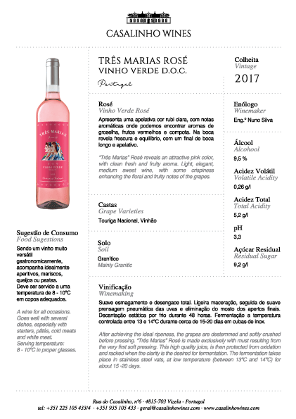 TrêsMarias是一种玫瑰葡萄酒,与复杂化脱节。它应该在阳光明媚的下午喝醉,伴随着大量的笑声和娱乐。